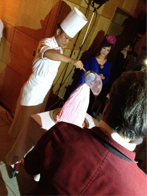 デザートは、またまたサプライズで、シェシバタさんより、スペシャルケーキ。幻想的な演出でした。