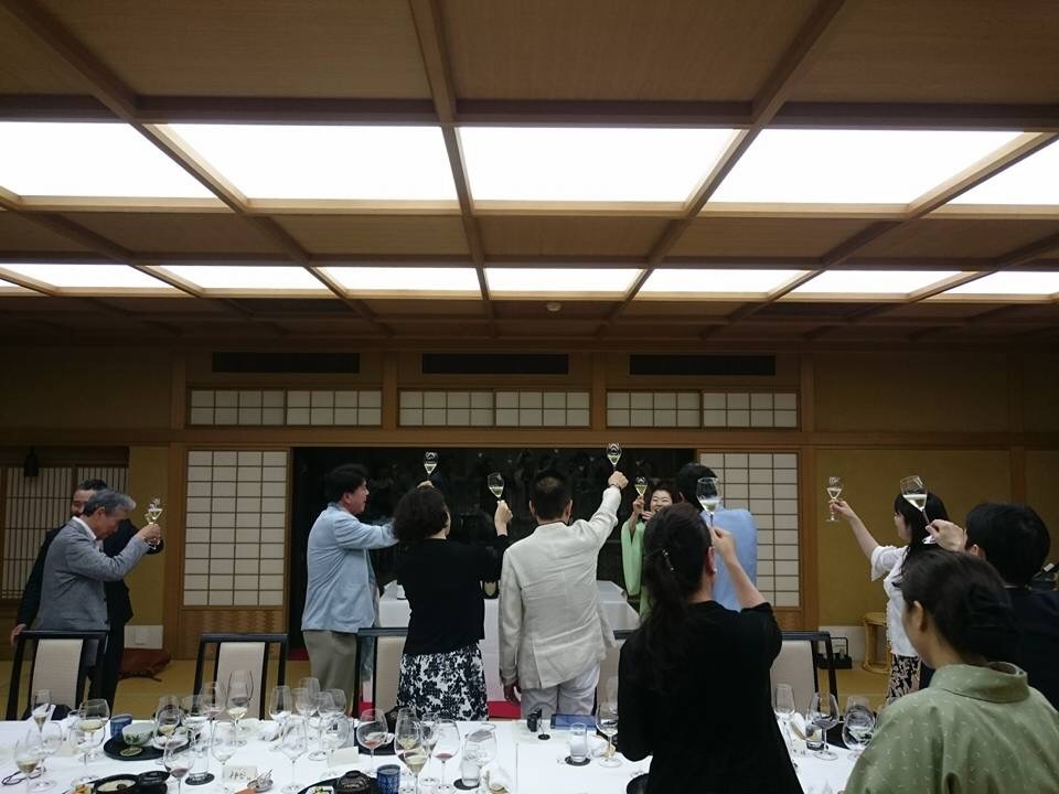 香楽のお料理をベースに、戸田さんと一緒に選んだワインを、戸田さんがサーブ。 さすがの華麗なるサービスで皆さまも惚れ惚れ。