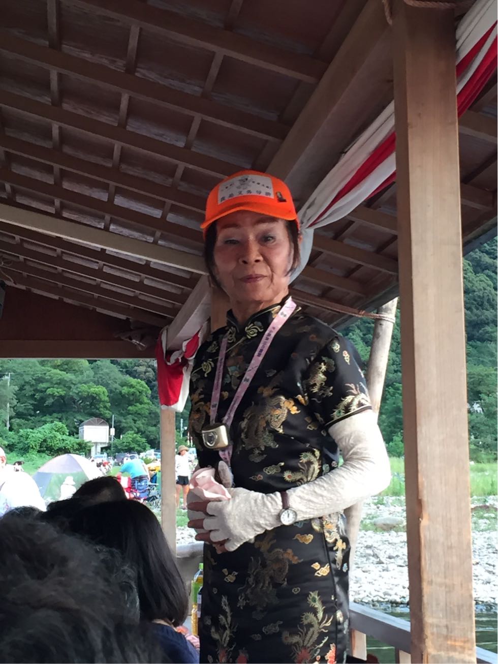 途中で鵜飼ガイドさんによる、ご説明。岐阜や長良川鵜飼の歴史など、とてもわかりやすく解説くださいました。鵜飼には1300年もの歴史があり、今年の3月には国の重要無形民俗文化財にも選ばれました。伝統的な装束をまとった鵜匠さんは、宮内庁の式部職だそうです。