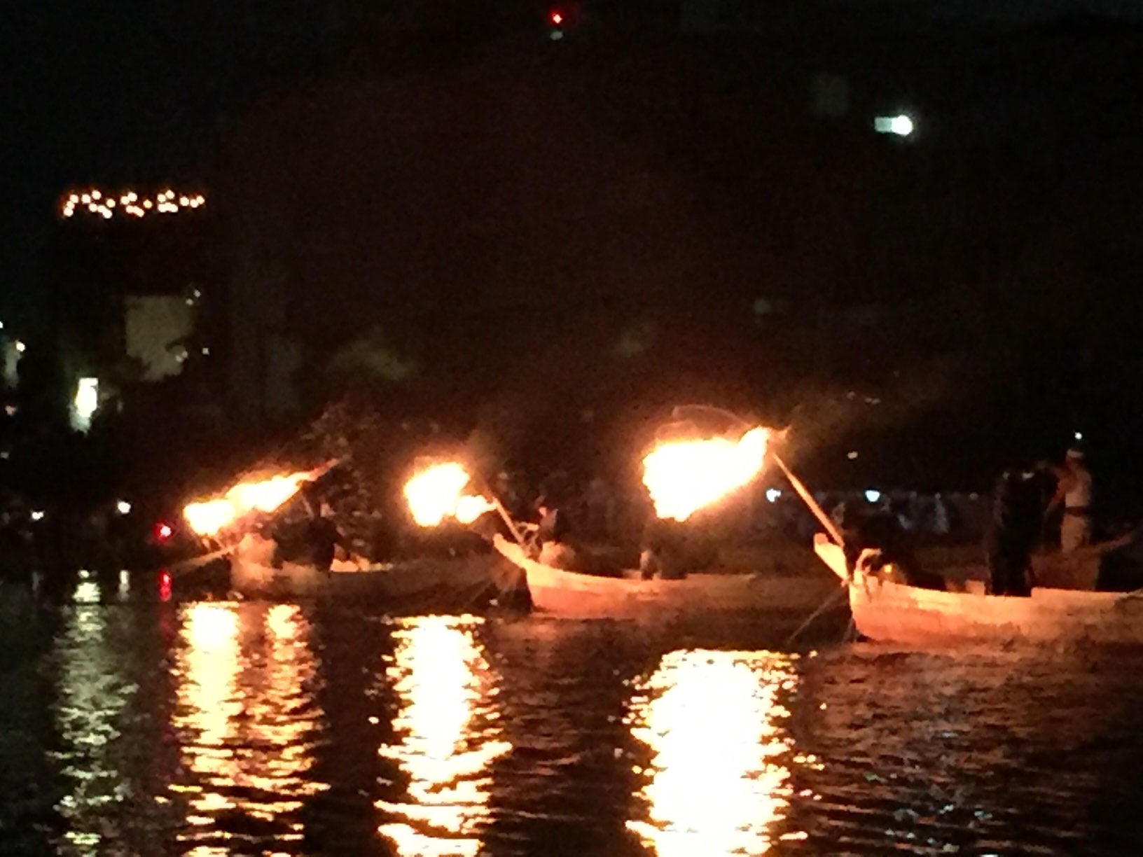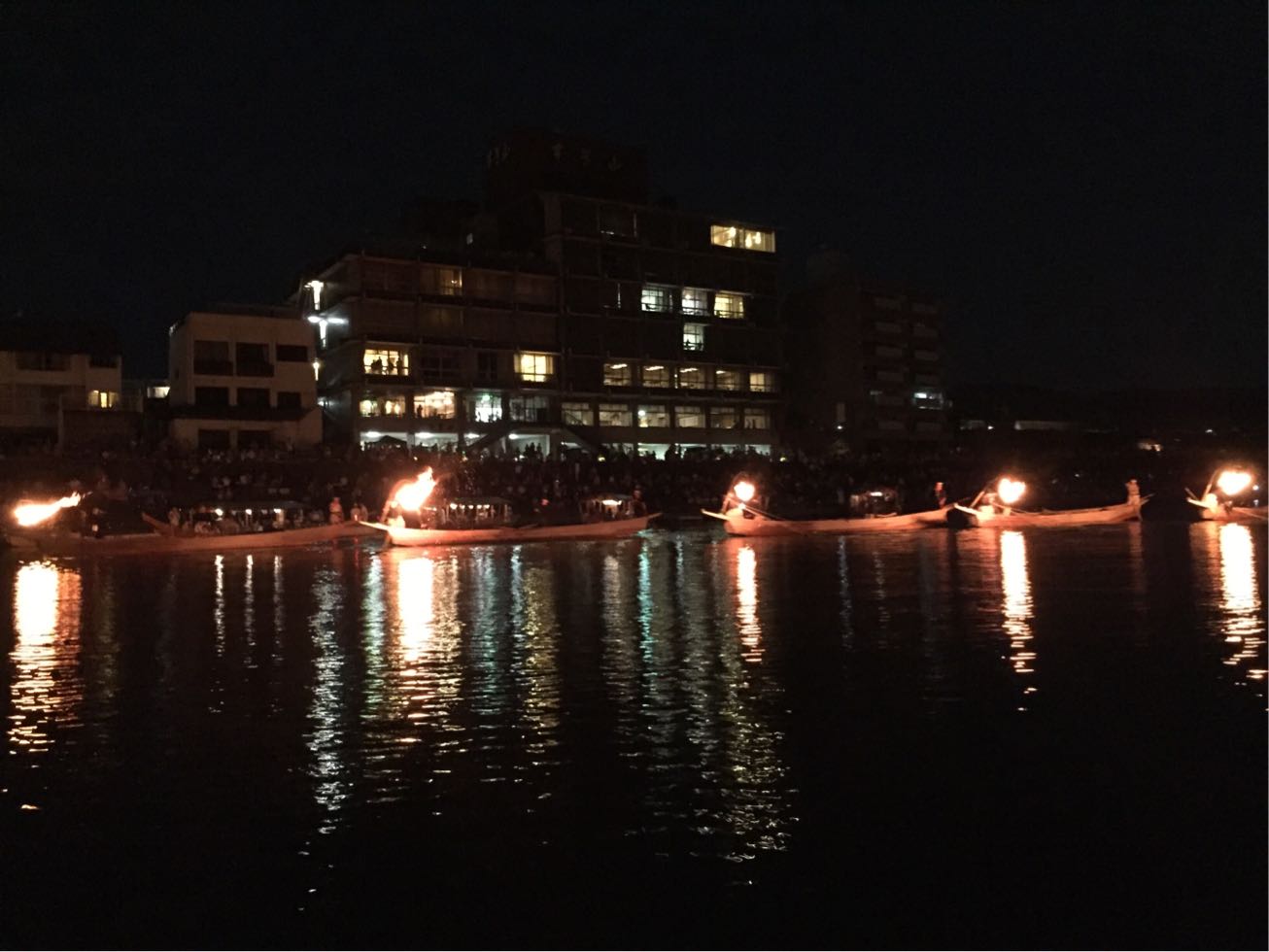ズラッと並ぶ篝火の幻想的な灯りと、鵜匠さんの迫力ある手綱さばきに、うっとり見惚れておりました。
