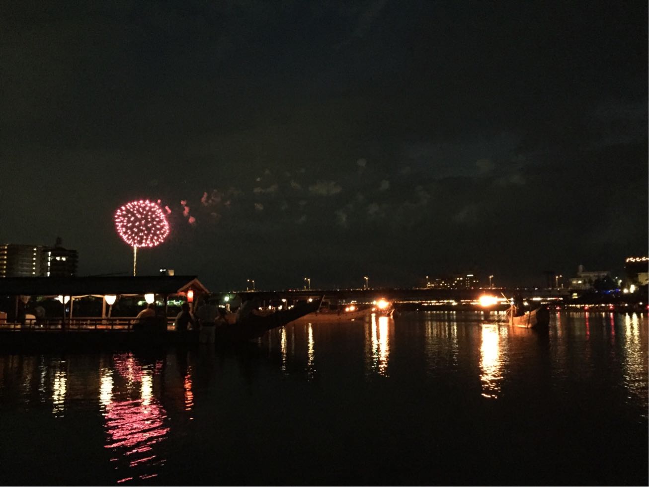 鵜飼舟と、花火。