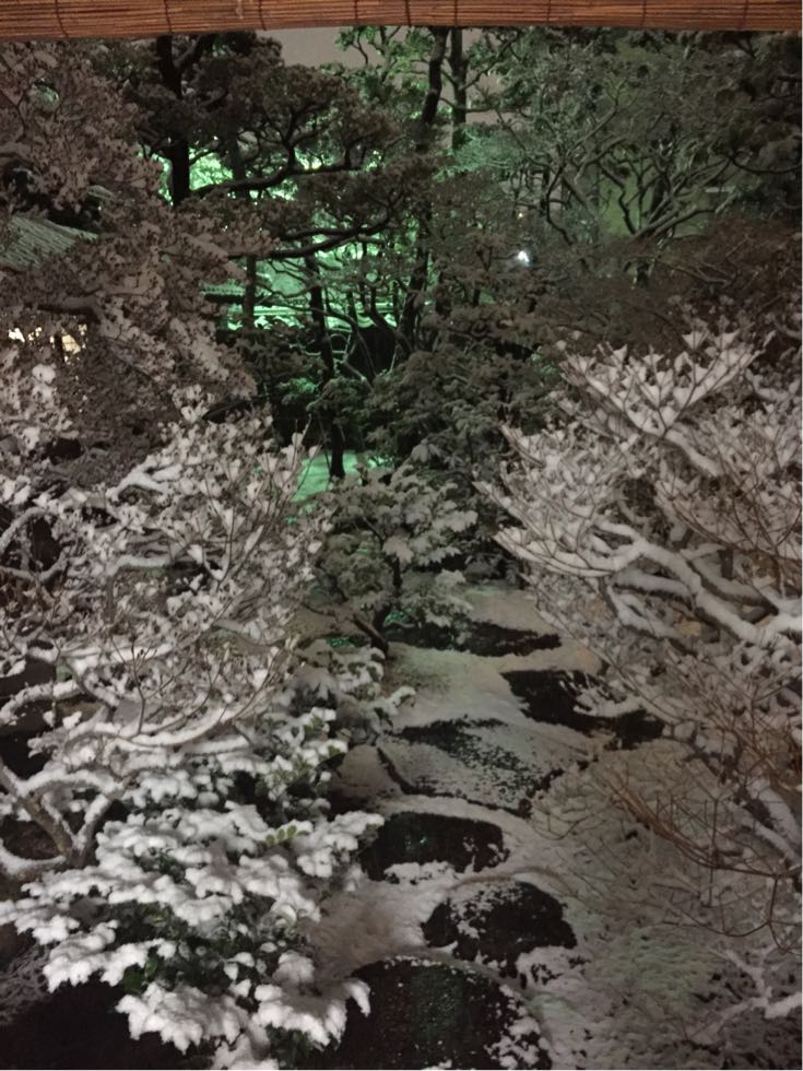 雪のお庭を眺めながらの雪見酒は最高でしたが…遠方へお客様のお帰りの足元が心配です。